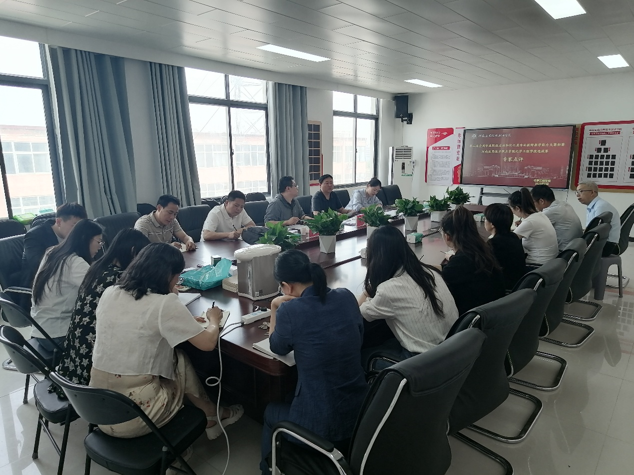 比赛邀请了河南交通职业技术学院吴笑伟教授、河南机电职业学院呼延永江教授、郑州幼儿师范高等专科学校彭媛教授共三位专家进行现场评审,比赛由化学工程学院副院长岳瑞丰主持。本次比赛共分为教学展示和答辩两个环节,比赛中,各参赛选手精神状态饱满、情绪高涨、气氛热烈,充分展现了我院教师昂扬向上、勇争先锋的精神风貌。赛后,各位评审专家对各参赛队的综合表现进行点评,肯定成绩的同时,也指出了存在的不足之处。