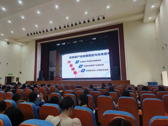 尹教授先后从我国化妆品产业的发展历史、化妆品与美容产业的新机遇、化妆品行业人才现状与未来三个方面详细阐述,使与会师生对化妆品产业的过去、现在和将来有了更深刻的认知。同时尹教授还从育人的角度对我院学生寄予厚望,为学生带来一节课程思政示范课,对我校化妆品经营与管理专业的建设和人才培养具有较大促进意义。