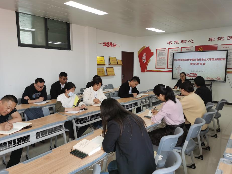 当前,学习贯彻习近平新时代中国特色社会主义思想主题教育正扎实开展。5月11日,副校长陈君丽以“坚持不懈用习近平新时代中国特色社会主义思想凝心聚魂”为题到化学工程学院开展主题教育调研座谈会。化学工程学院党政负责人,教师代表参加了调研会。