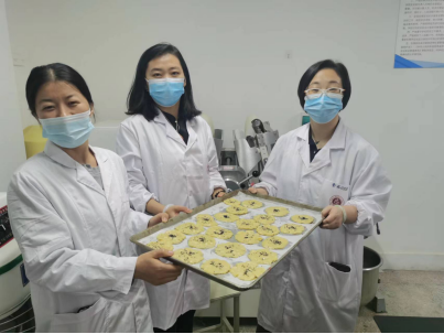 活动中,食品专业老师教授大家制作桃酥,大家纷纷动起手来,按照配方进行制作,称量、和面、搅拌、揉搓、成型,一道道工序下来有条不紊,忙得不亦乐乎,活动现场气氛融洽,一片欢声笑语,老师们的心情得到了极大的放松。