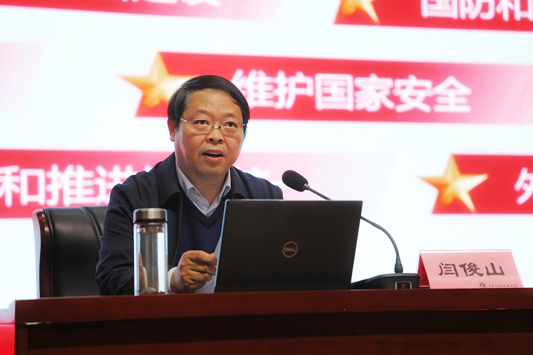 闫俊山从师生们关注的北京冬奥会为切入,从中国奥运百年,看中华之崛起,深刻剖析了过去我们为什么能够成功、未来我们又怎样才能继续成功?从十八大以来党和国家事业取得的历史性成就、我们党百年奋斗的历史意义和积累的宝贵历史经验等几个方面,带领师生系统学习、解读了党的十九届六中全会精神。既有政治高度,又有理论深度,同时也对广大同学提出了勤奋学习、积极锻炼、全面发展的殷切希望。