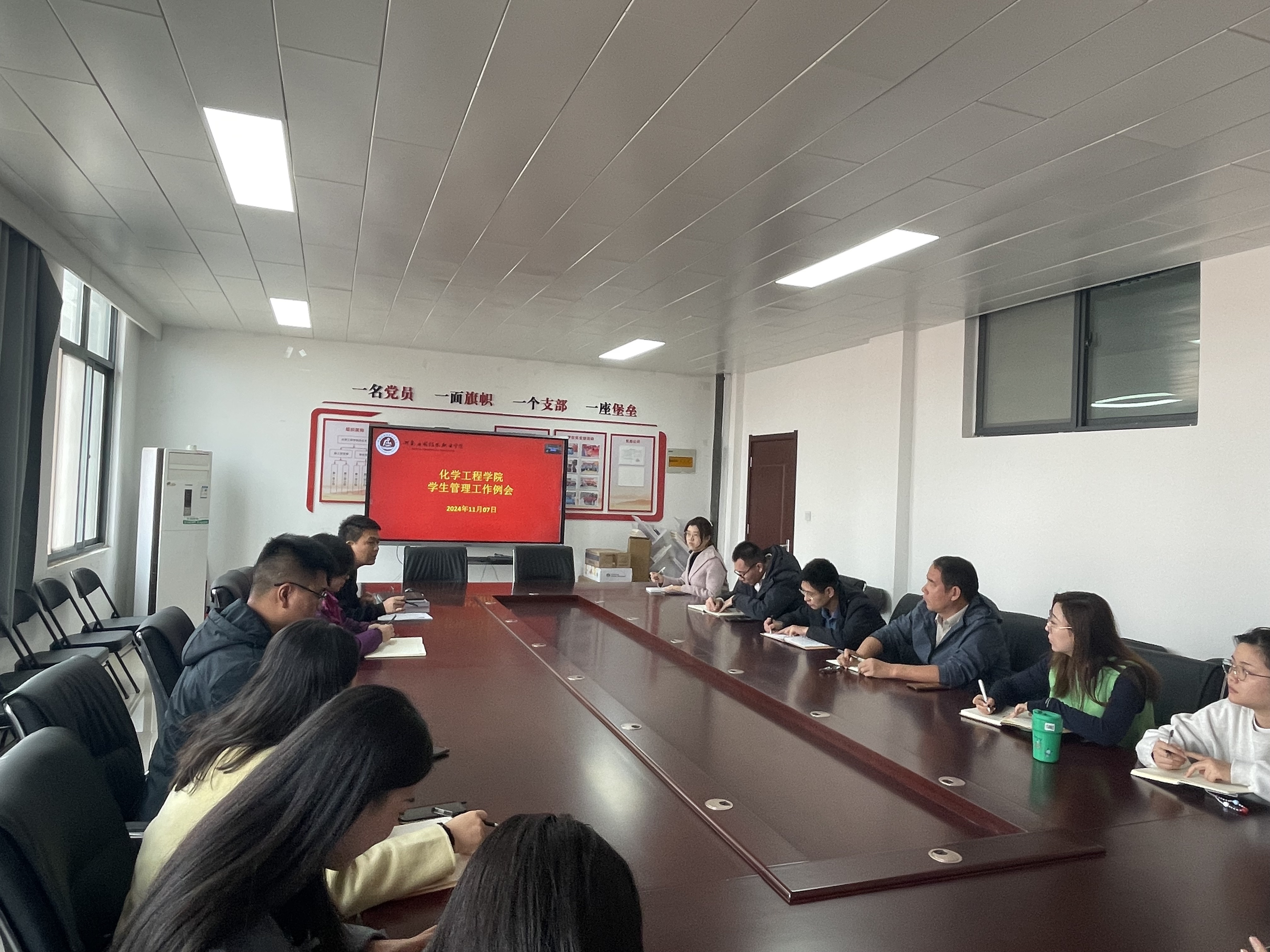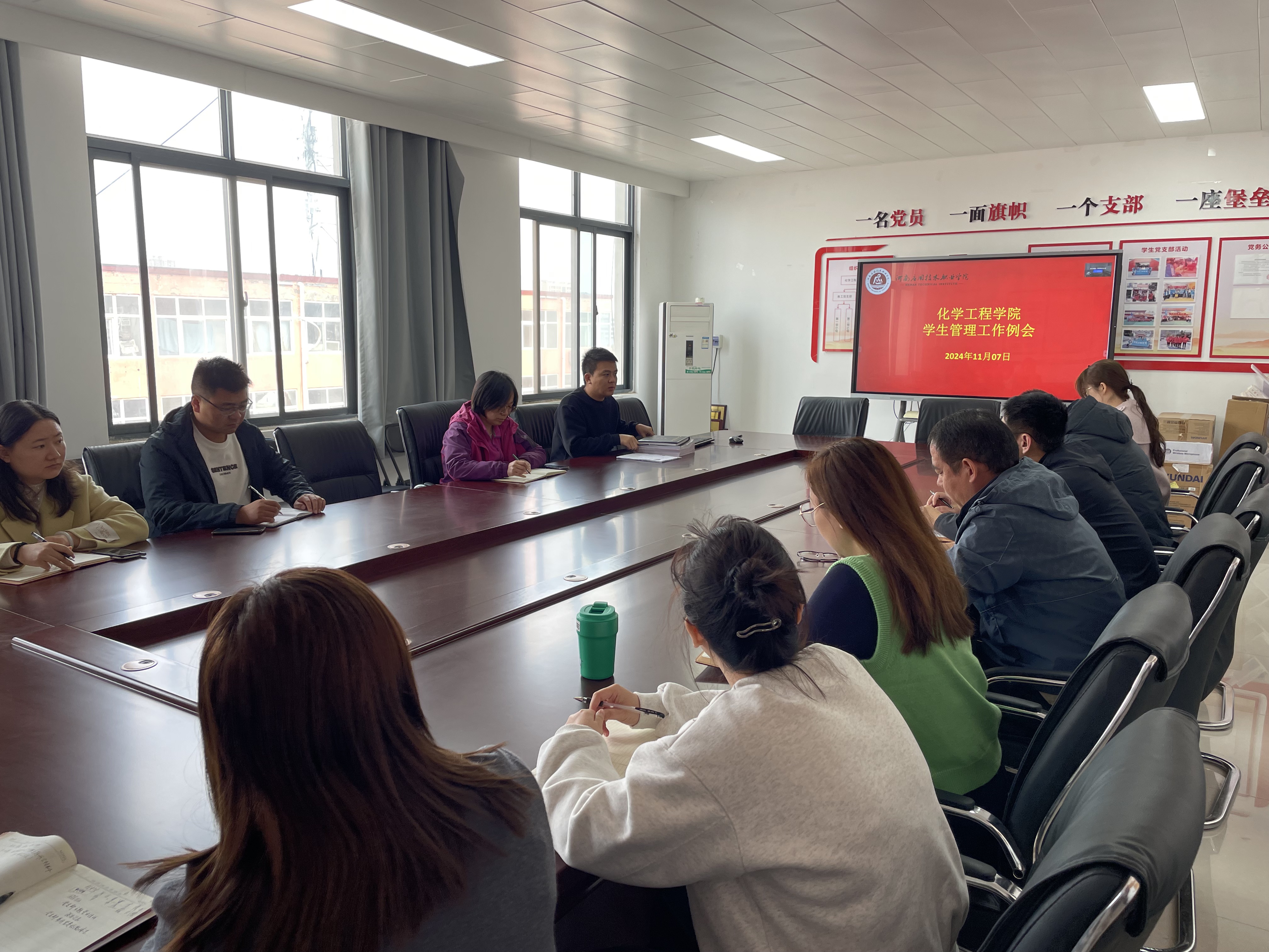为了进一步扎实推进学院学生管理工作,化学工程学院于2024年11月7日在A512召开学生管理工作例会。学院党总支书记陈永惠、党总支副书记常惟诚、学籍专员周惠、以及全体23、24级专兼职辅导员参加会议,会议由常惟诚主持。
