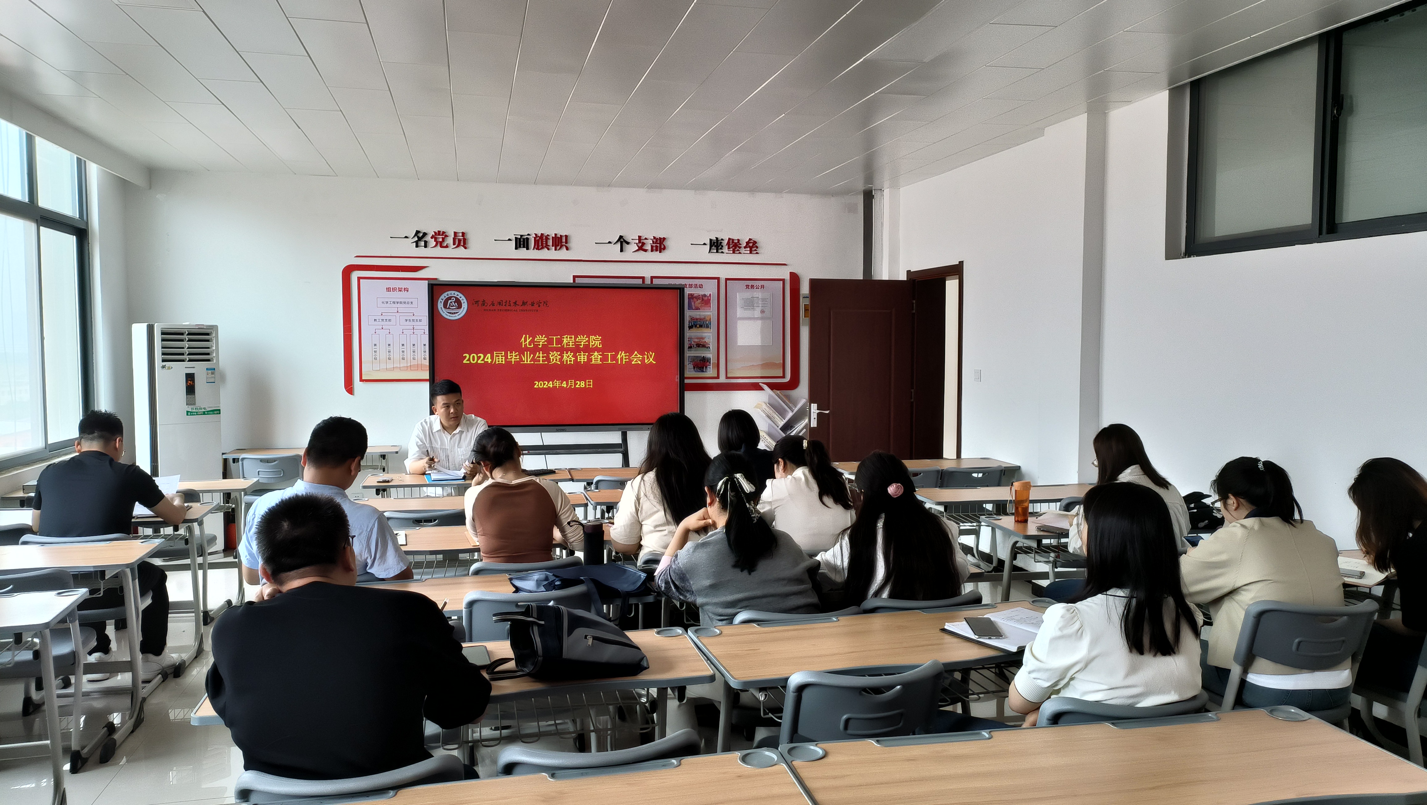 认真做好本届毕业生资格审查工作是确保我院学历证书发放和学历电子注册正确、及时完成的一项重要工作。4月28日,化学工程学院组织召开了关于2024年普通高校毕业生资格审查工作会议。本次会议由化学工程学院党总支书记陈永惠主持。