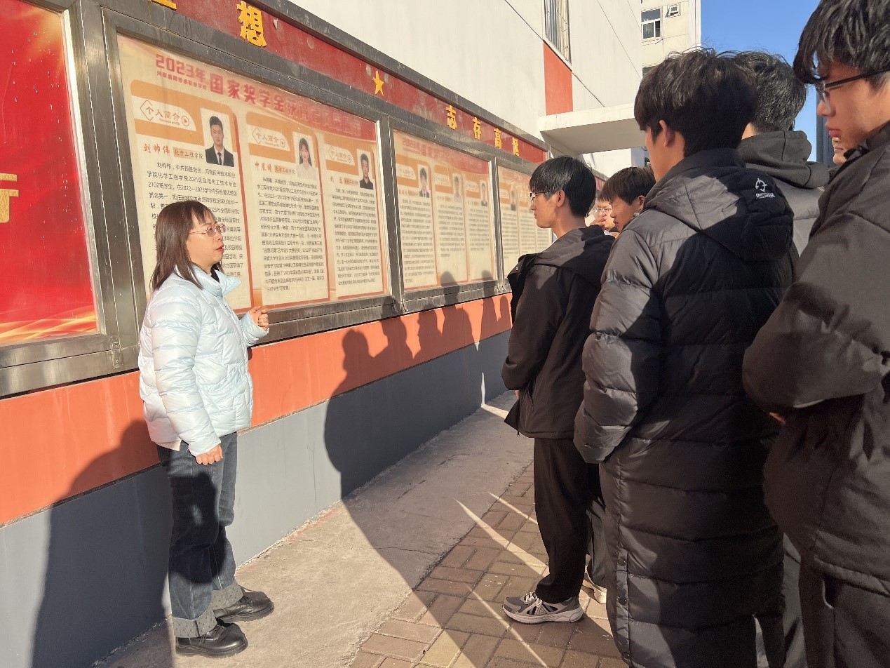为了弘扬优良学风,鼓励同学们养成刻苦学习、重视实践拓展的优良品质、树立刻苦奋进的指向标,2023年12月28日,化学工程学院开展以 “与榜样同行,做优秀学子”为主题的向国家奖学金获得者学习的活动,组织在校生前往国家奖学金展板进行观摩学习。