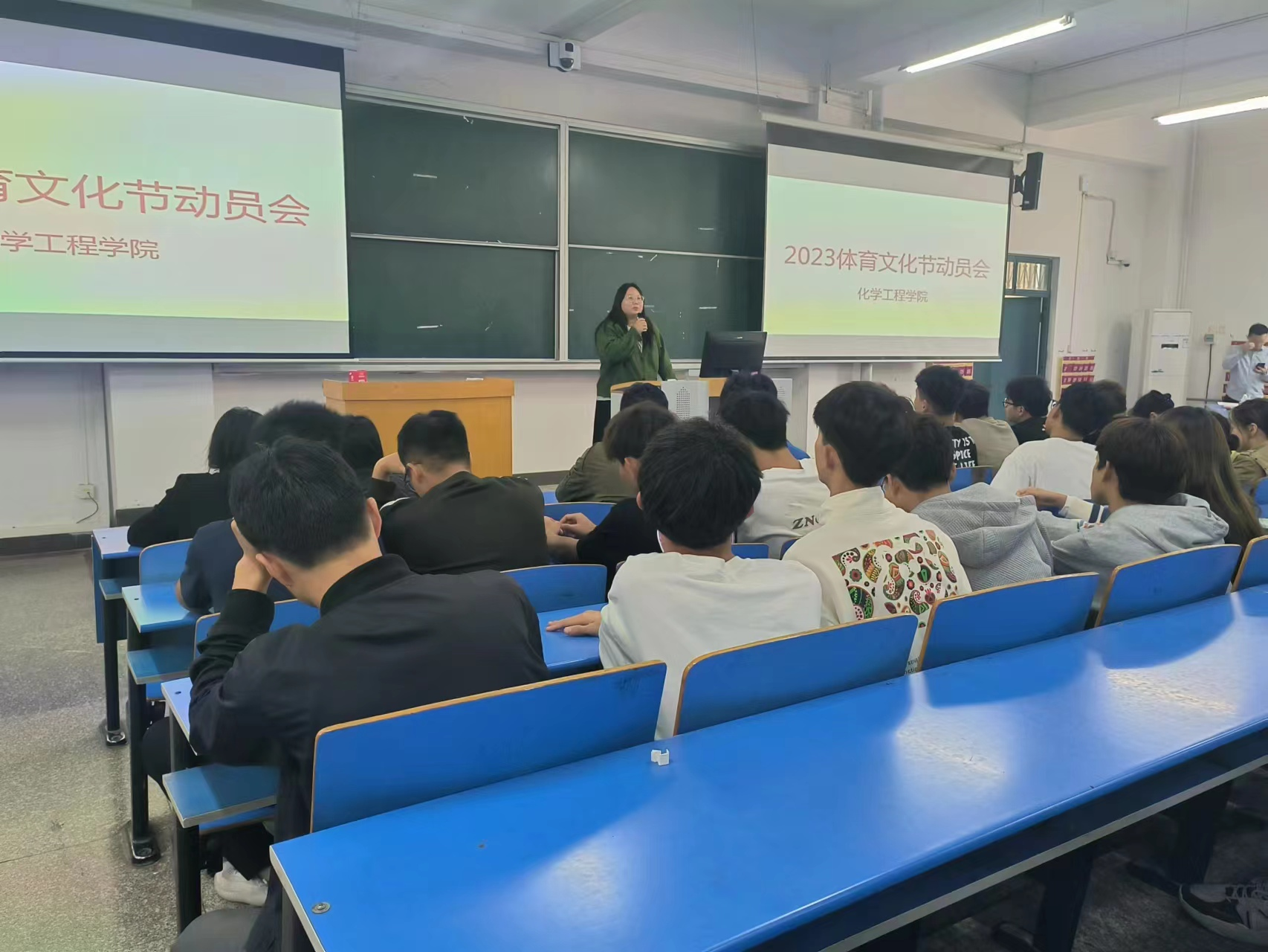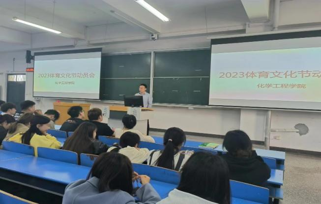 2023年10月23日,化学工程学院召开学校第七届体育文化节参赛动员会,学院团总支书记刘海龙、带队教练员周惠、参赛学生参加了会议,会议由刘海龙主持。