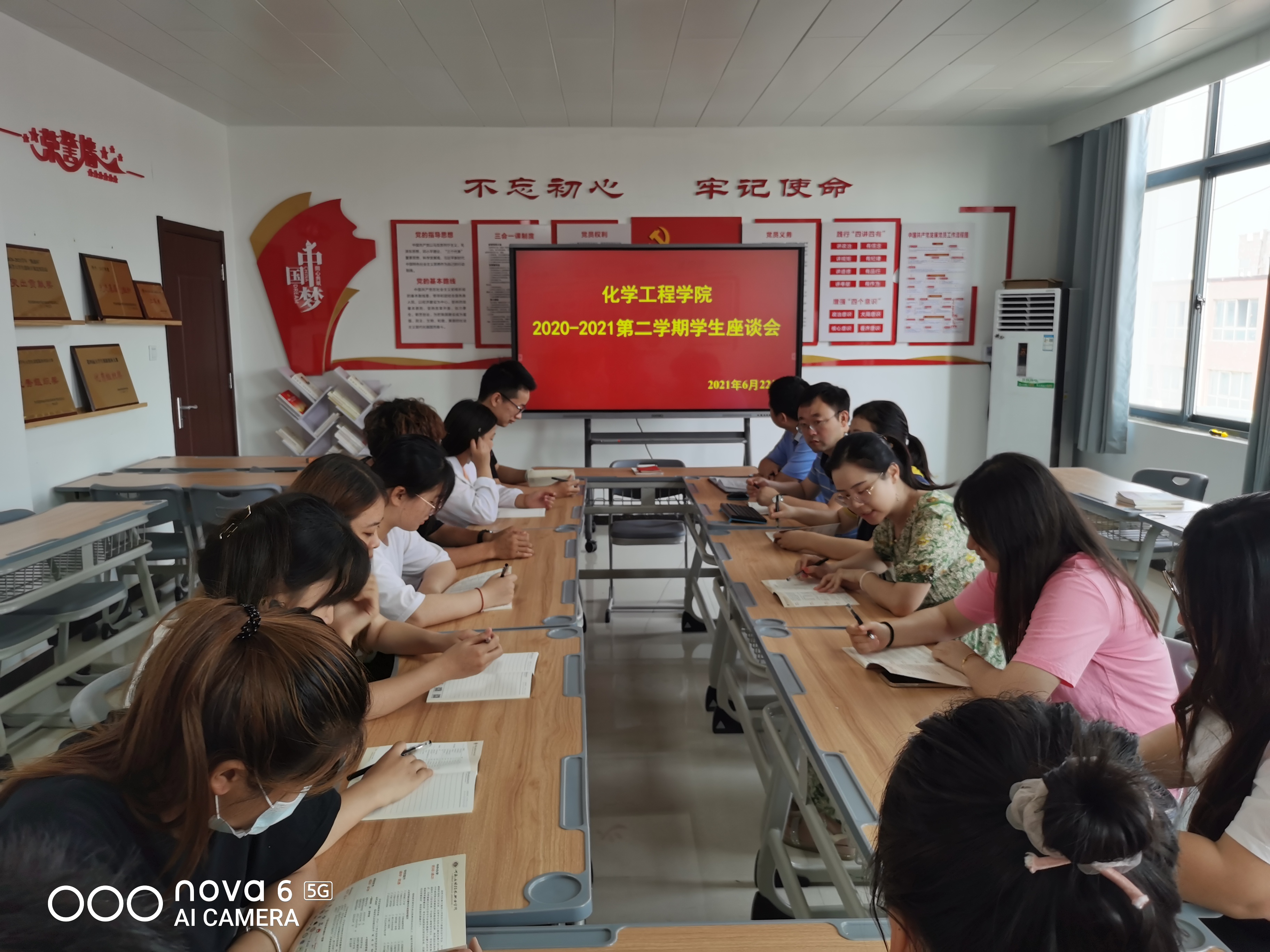 2021年6月22日,化学工程学院召开2020-2021学年第二学期学生座谈会。本次座谈会邀请2019、2020级不同专业的10名学生代表参加,教学及学生管理部门的相关老师参加了座谈,会议由办公室主任付大勇主持。