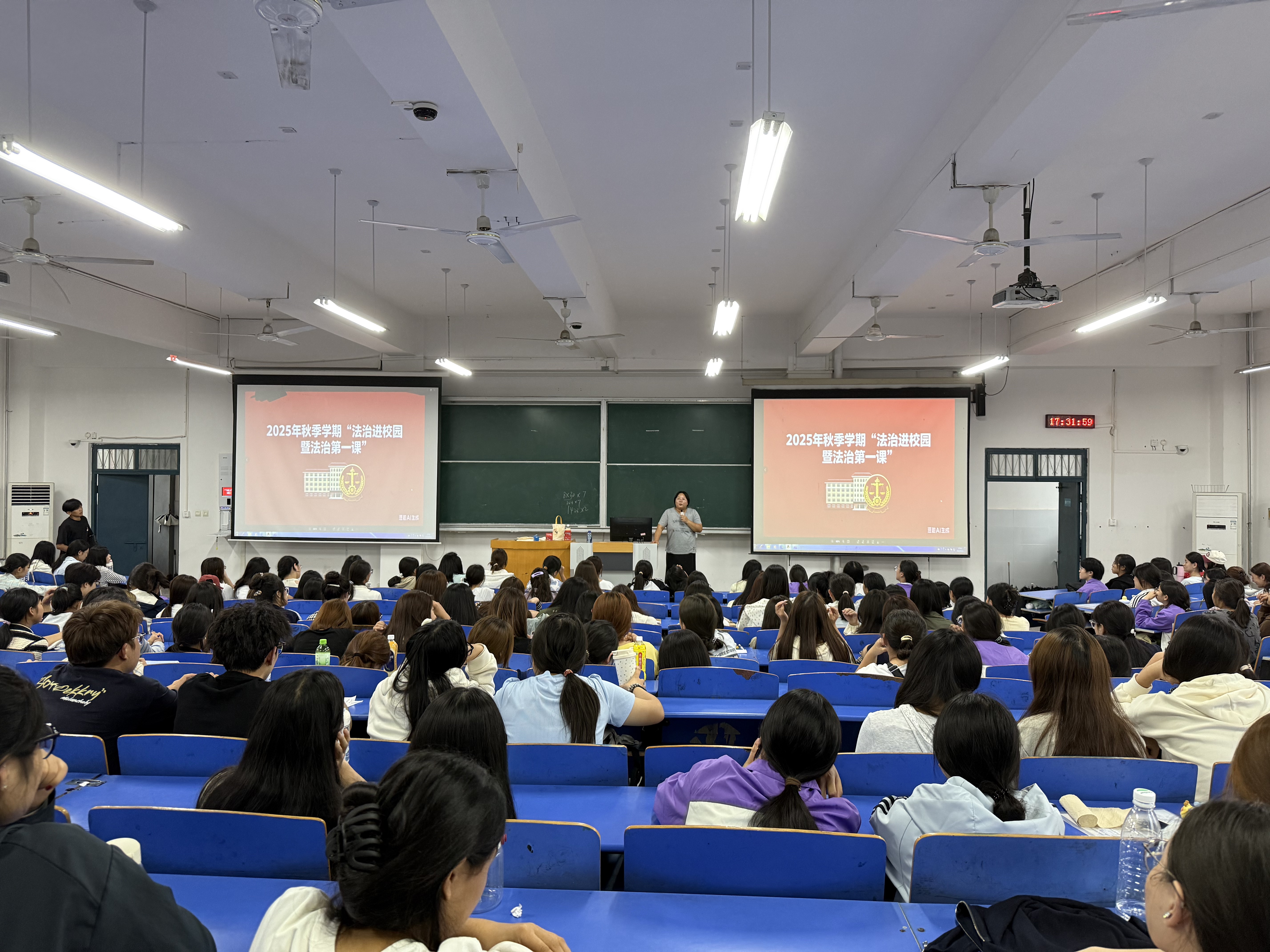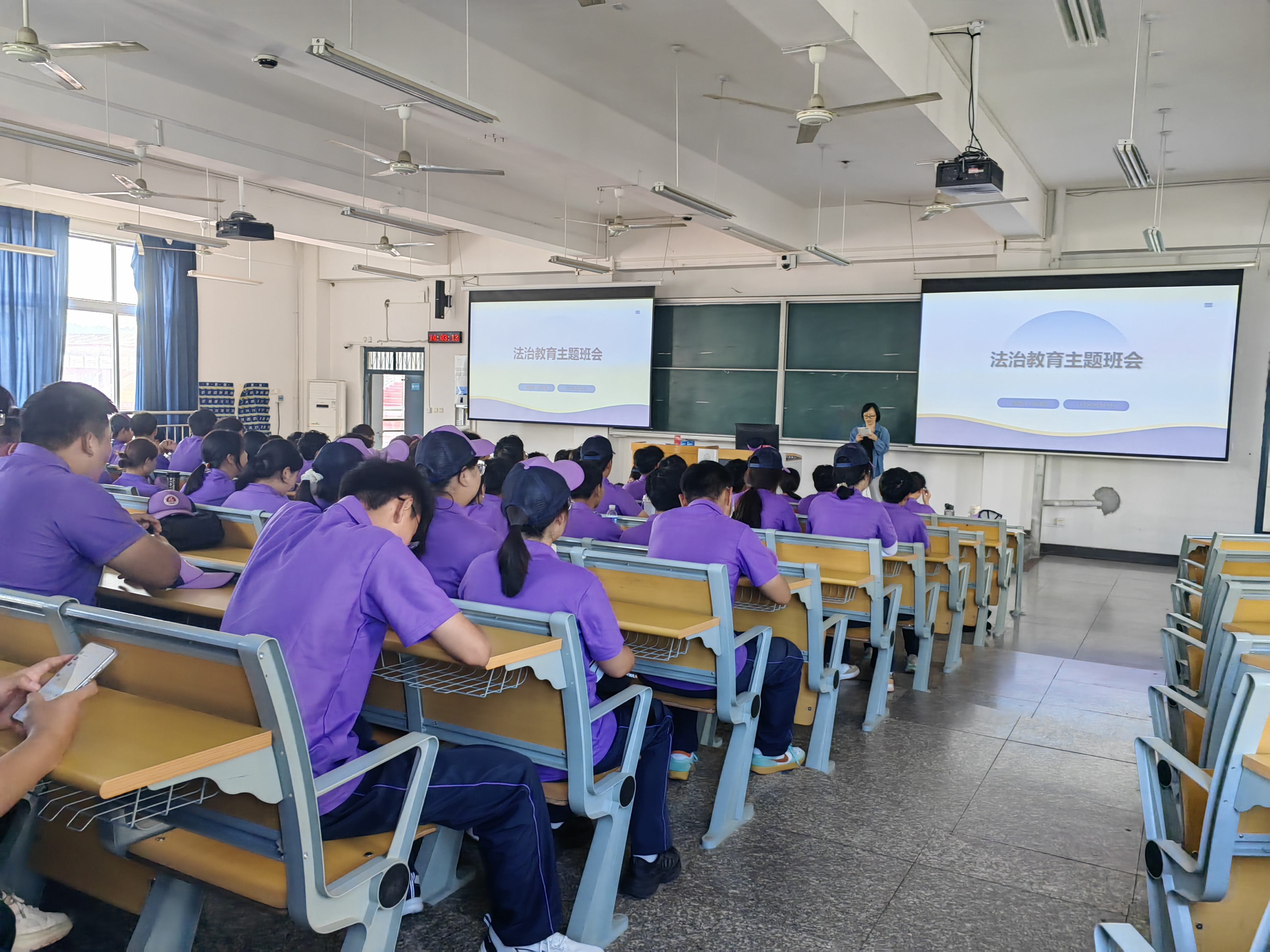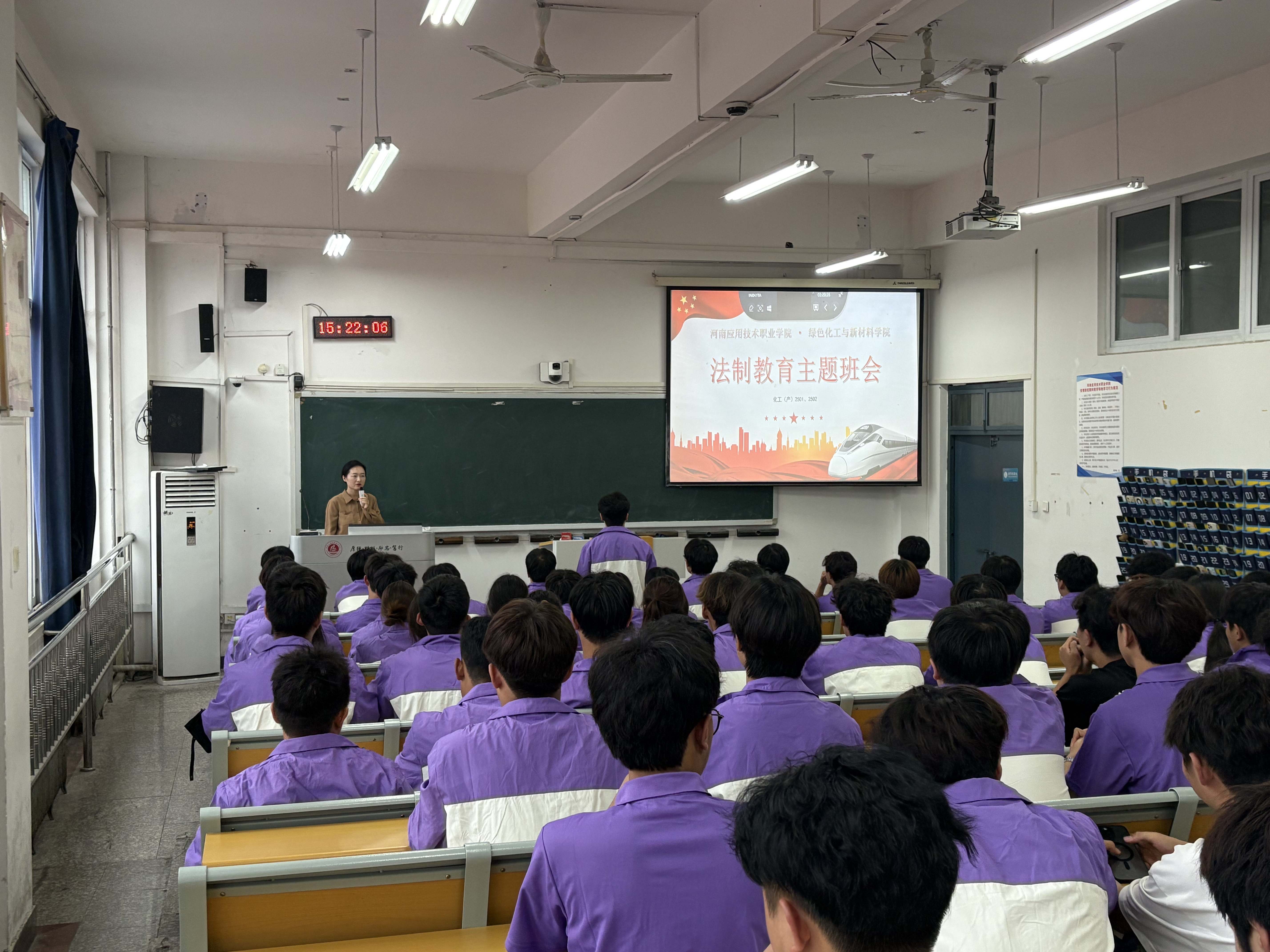 主题班会紧扣法治教育核心,聚焦核心法治思想与法律法规,各班通过 PPT 讲解、法条解读、案例分析等形式,围绕国家安全、消防安全、防诈反诈、食品安全四大主题展开深入讨论:国家安全板块,通过分享典型案例,引导学生认清危害国家安全的行为表现,树立“国家安全,人人有责”的意识;消防安全环节,结合实验室安全、宿舍用电安全等场景,演示灭火器使用方法、讲解火灾逃生技巧,强化学生应急处置能力;食品安全部分,则通过分析校园周边食品隐患、普及食品选购常识,帮助学生建立健康饮食观念。
