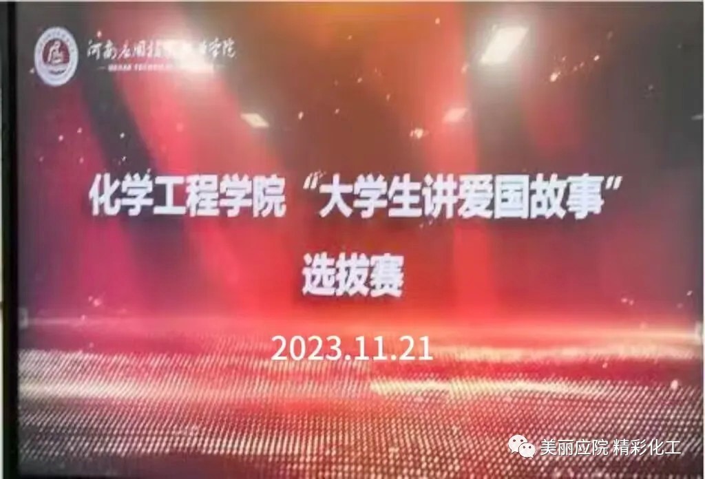 为深入学习贯彻习近平新时代中国特色社会主义思想和宣传党的二十大精神,加强大学生的爱国主义情怀,鼓励大学生弘扬爱国主义精神,2023年11月21日,化学工程学院组织开展“大学生讲爱国故事”选拔赛。