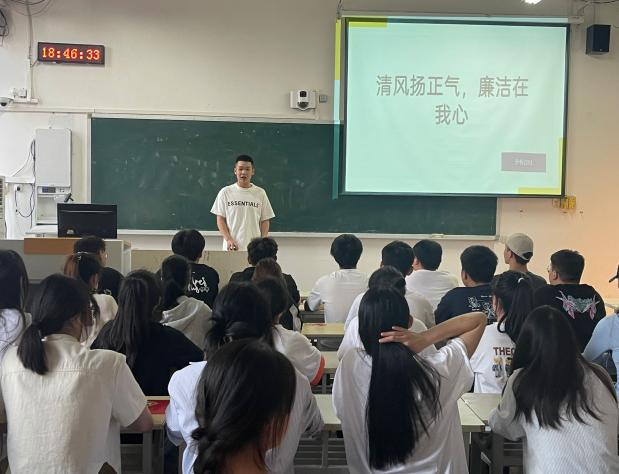 为引领我院青年学生树立正确的人生观、价值观,营造风清正气、积极向上的校园廉洁文化氛围,让同学们感悟廉洁自律的重要性,提升青年学生“知廉信廉,敬廉崇洁”的思想。近日,化学工程学院团总支组织各班团支部开展了“清风扬正气,廉洁在我心”主题团课学习活动。