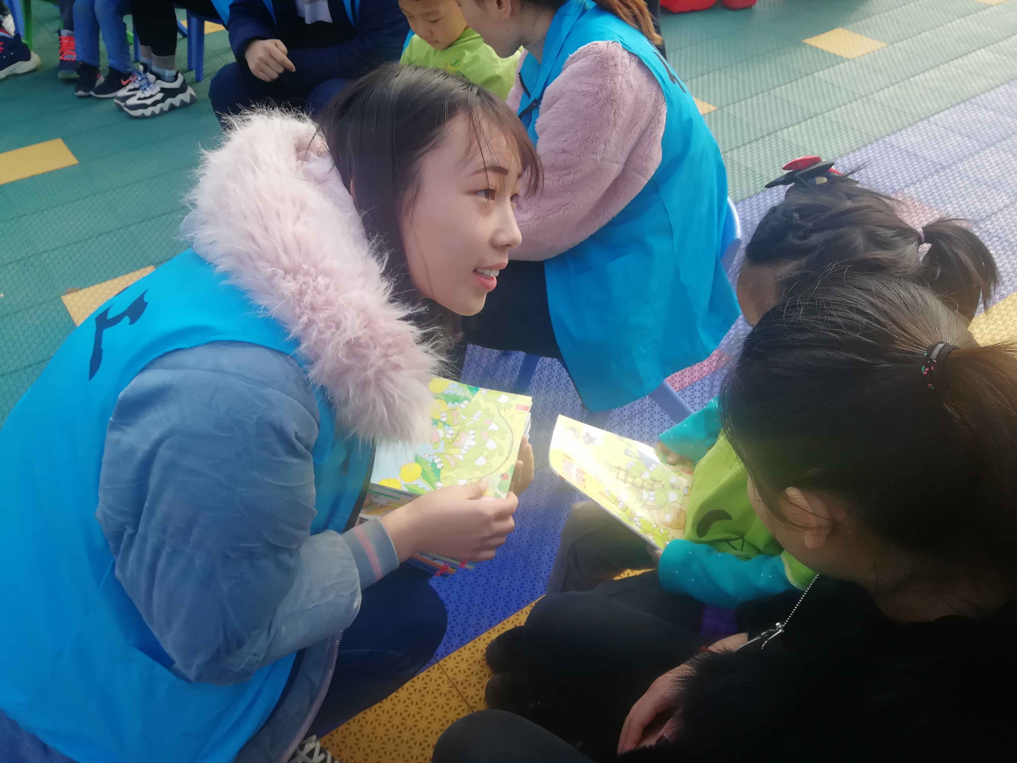 此次活动主要以小游戏的方式展开,根据小朋友们的身心特点,我们准备了“鼻子鼻子鼻子”、“老鹰捉小鸡”、“动物猜猜猜”等游戏,目的是让小朋友们感受到快乐,在游戏中与小朋友们亲切交流,密切合作,让他们感受到我们带来的温暖。