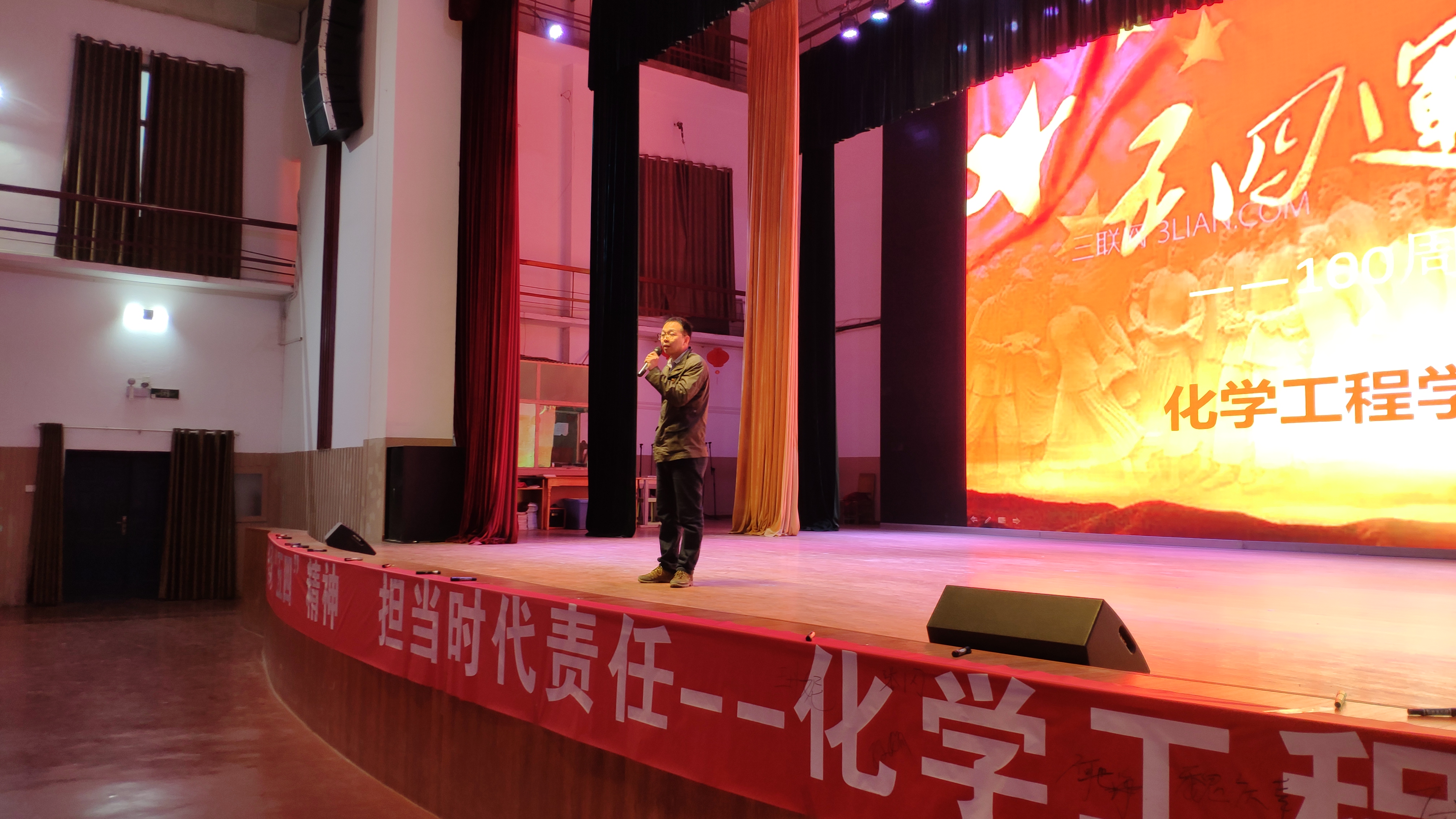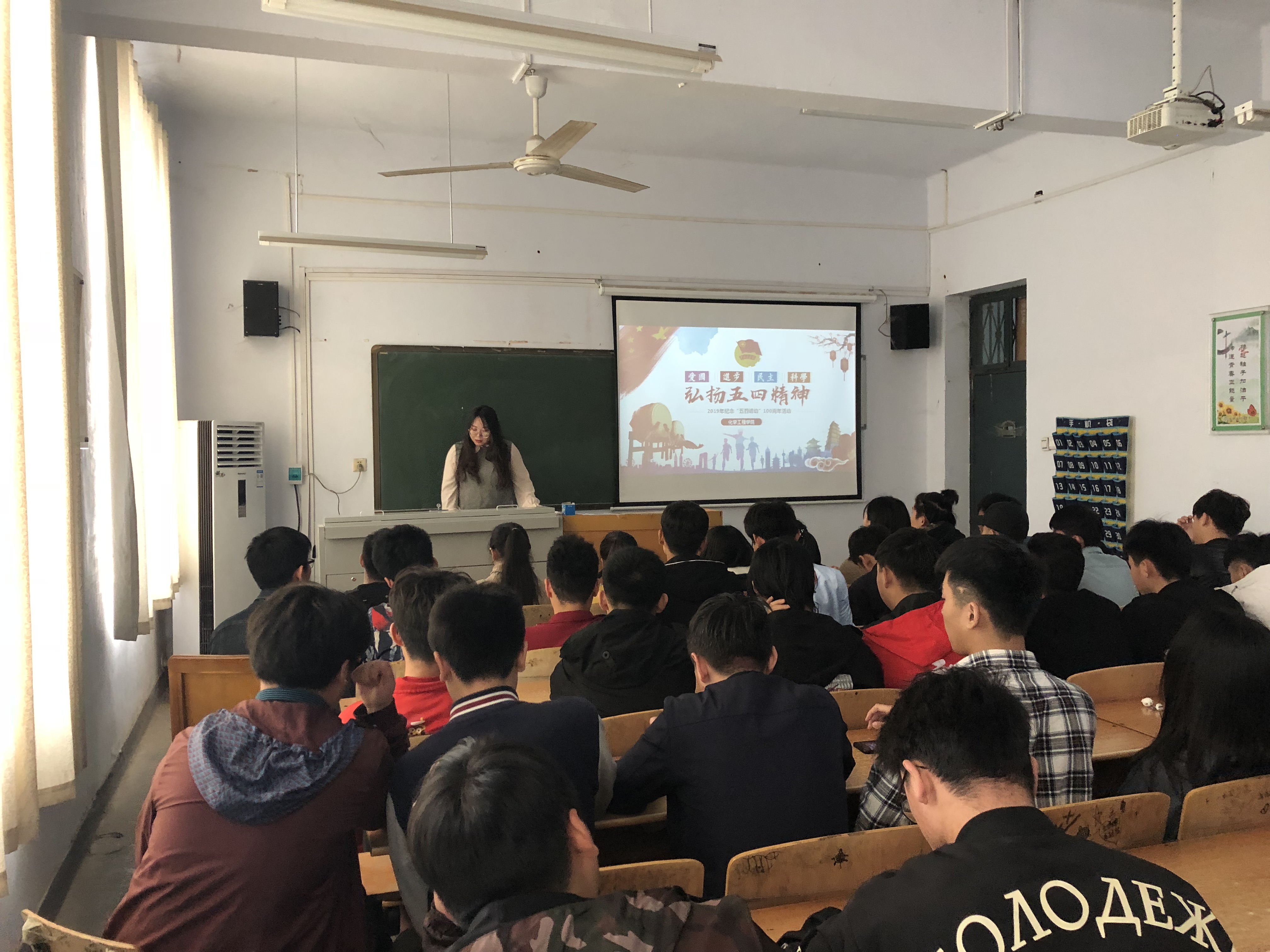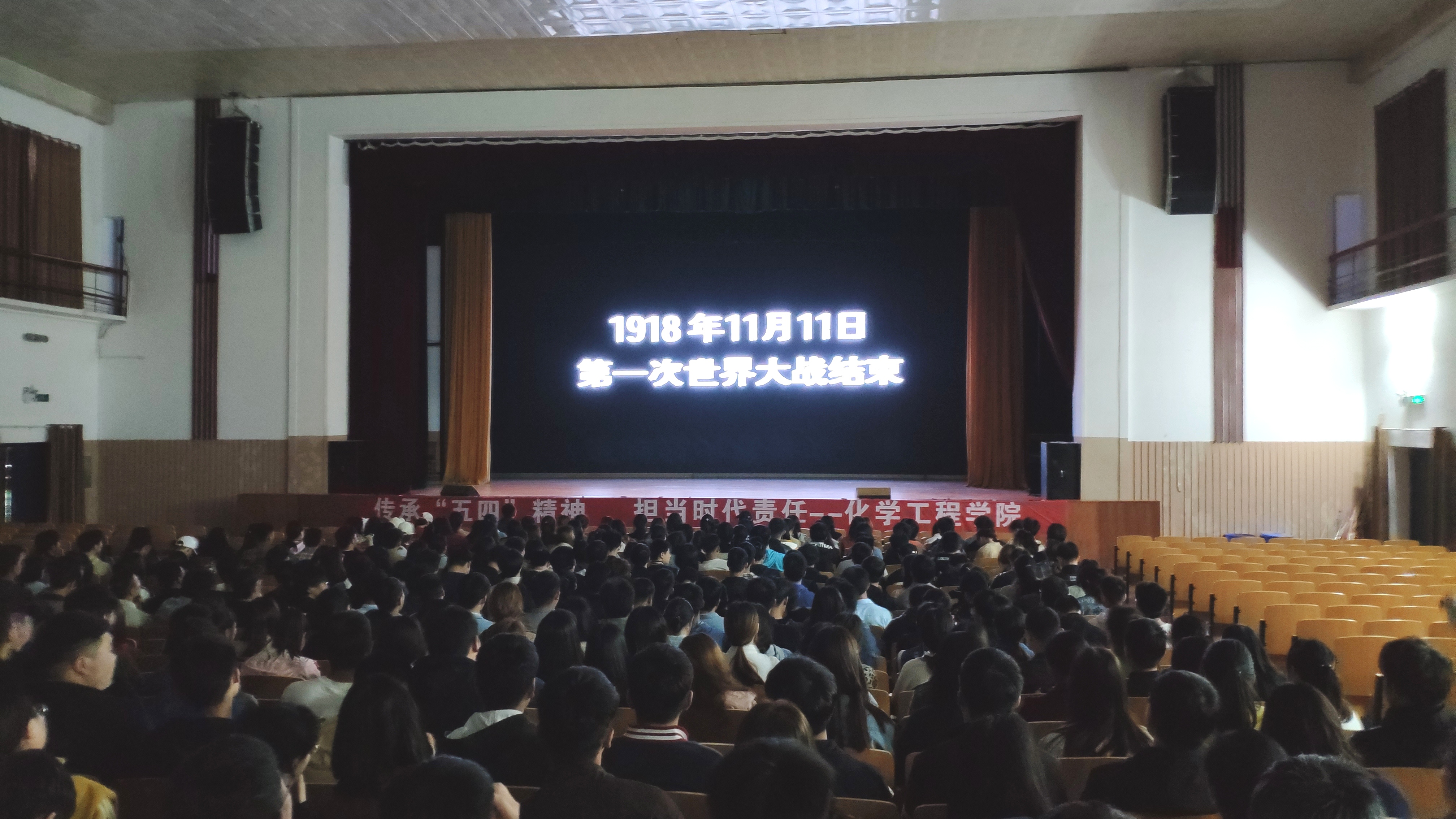 首先于4月27日18点在学校大礼堂看五四纪念片《我的1919》,追寻光辉足迹,传承五四理想,而后我院系书记讲五四精神,宣传“五四”精神以及共青团的光荣历史和优良传统