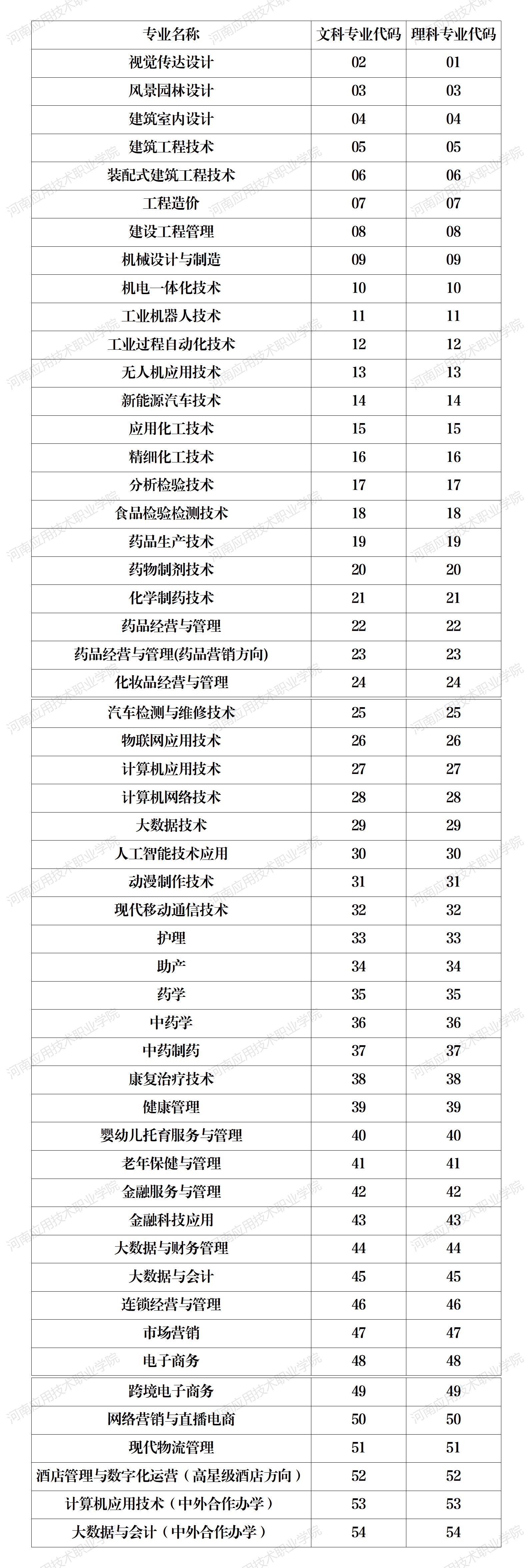 上一条:河南应用技术职业学院欢迎你 下一条:2024年普招招生专业及计划(外省)